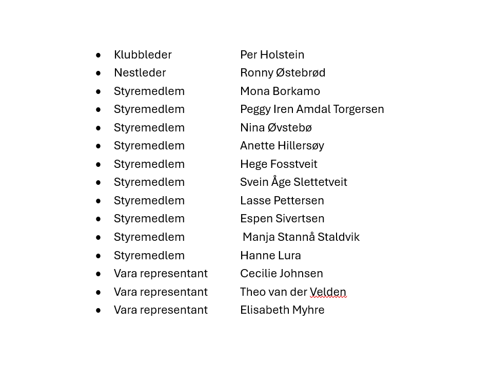 Valg av nytt klubb styre foregikk uten noe form for dramatikk da det ble avholdt valg på årsmøte dag to. Slik ser klubbens styre ut fra i dag: