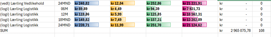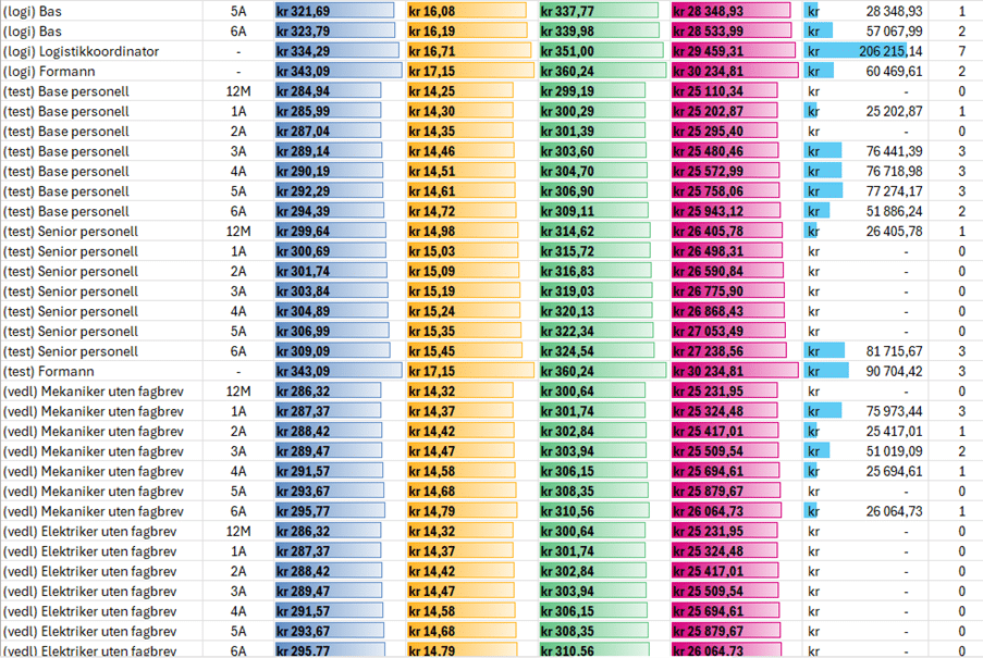 Oppdaterte lønnsmatriser