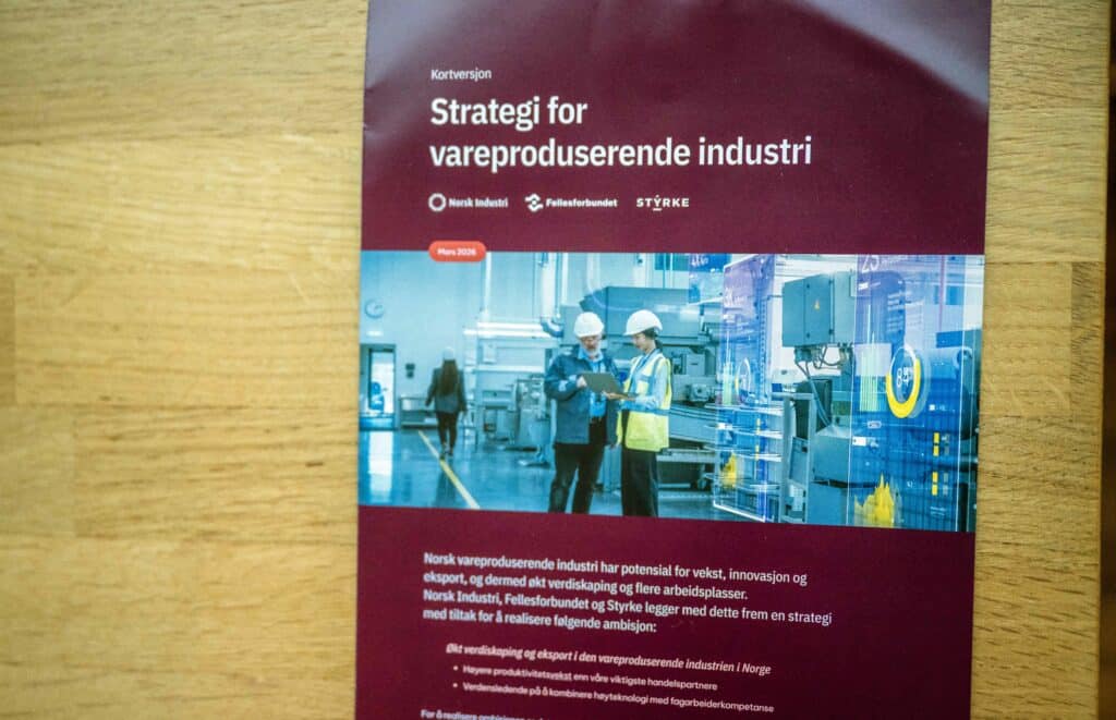 Norsk Industri, Fellesforbundet og Styrke foreslår også at Nærings- og fiskeridepartementet etablerer et nytt kontaktforum for vareproduserende industri, med ansvar for å følge opp strategien, skriver Norsk Industri.